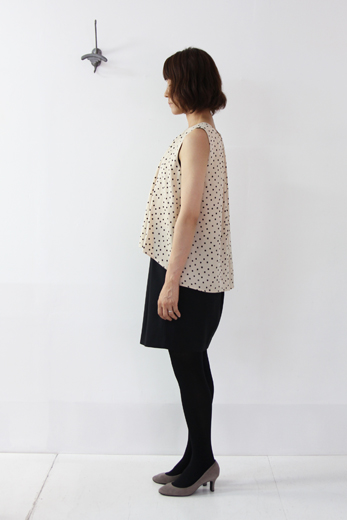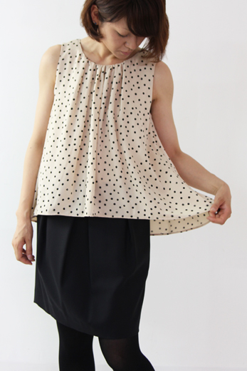 後ろ下がりのふんわりシルエットにランダムドット柄がとても可愛いトップスに
