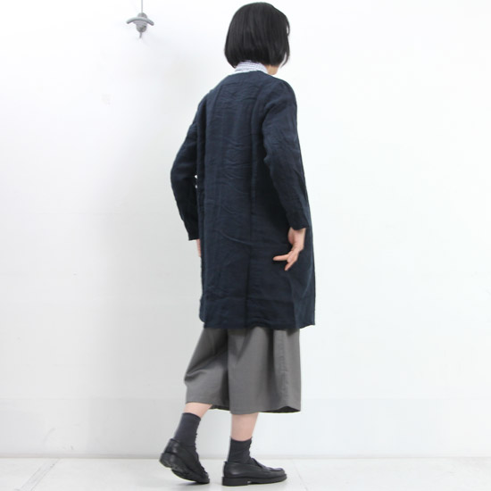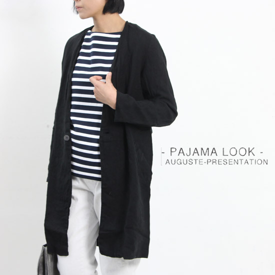 【PAJAMA LOOK】パジャマルックよりリネンノーカーラロングジャケット。