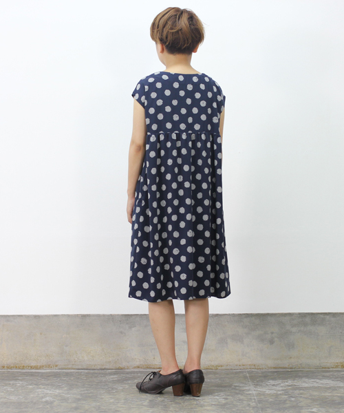 ドットノースリーブワンピースdahl’iacol:NAVYcotyle-コチレ-