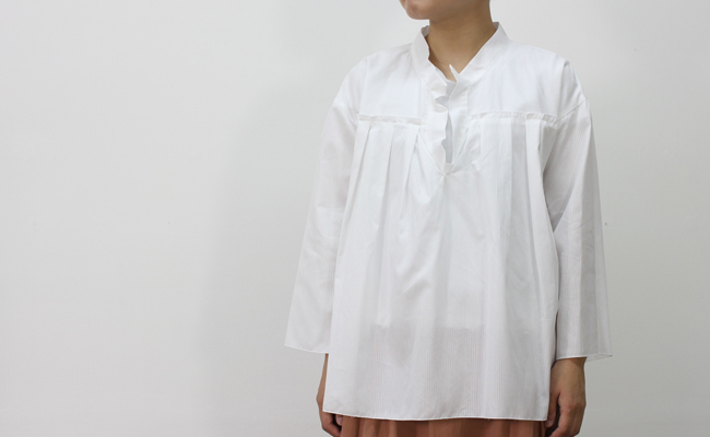今季より取り扱いをスタートした「dahl`ia(ダリア)」からドビー生地を使用した、たっぷりとしたシルエットのプルオーバーブラウス。肌触りのいい薄手のコットン生地は軽い着心地で、シーズンを通して活躍してくれます。