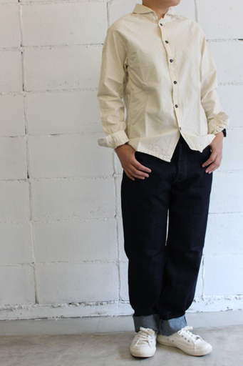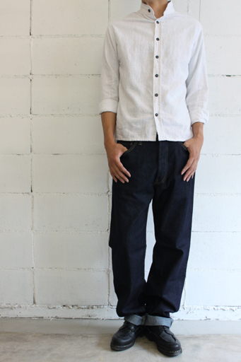 身長177cmsize:32を着用シャツ:GARMENT REPRODUCTION OF WORKERSSTAND FARMER SHIRT(OPEN)もちろんユニセックス展開です。