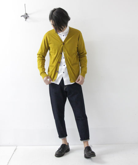 EELの定番カーディガンズ。春夏使用の上質なコットンニット素材で。定番カラーか、挿し色か。。迷う。