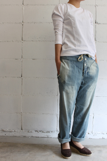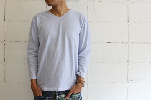 V NECK EEL/イール col:23 サックス 6,090円(税込) 色違いで持っていると何かと便利なVネックのカットソー。 浅めのVですがサイドが少し開いているのでネック周りがとてもきれいに見えます。
