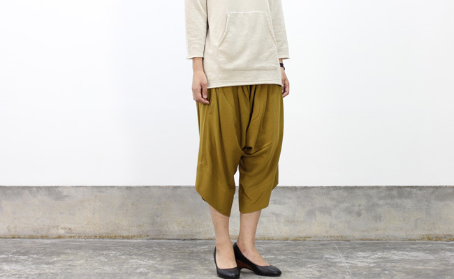 バンブーウール変形サルエルパンツ ミドル丈 FACTORY col.カラシ 17.850(税込)