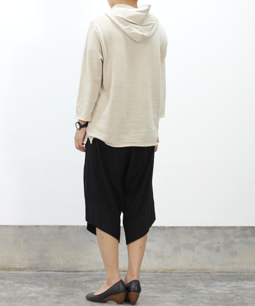 変形したシルエットが可愛らしいサルエルパンツ。 サラッとした肌触りで、暖かみのあるバンブーウールの生地を使用し、穿き心地が軽く、 とろっとした落ち感がキレイなシルエットに。