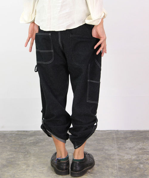 裾の内側に付いたストラップを留めるとロールアップしたシルエットに。