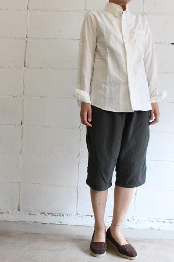 こにちわ。 こちらもちょっと一ひねり。 グラミチ定番のショートパンツを膝下6分丈ぐらいに。