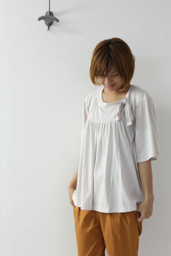 コットンモダールの柔らかなカットソー生地を使用したhaupiaの新作ブラウス。