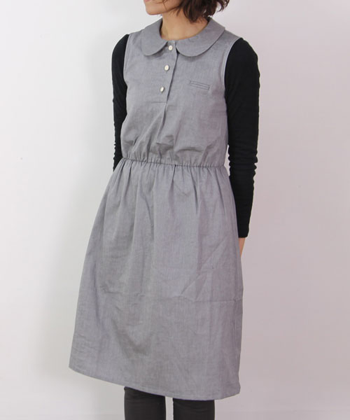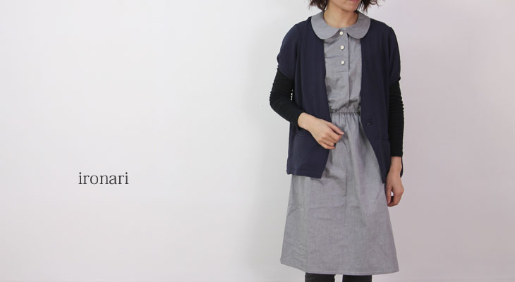 ironariから定番人気の陶器釦を使った新型。ラウンドカラーが可愛いワンピースです。