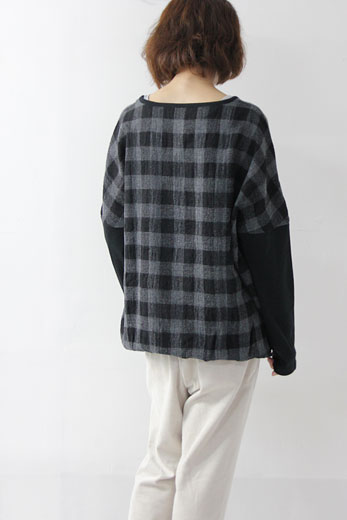 バックはウール素材のブロックチェック生地を使用し切替になっています。