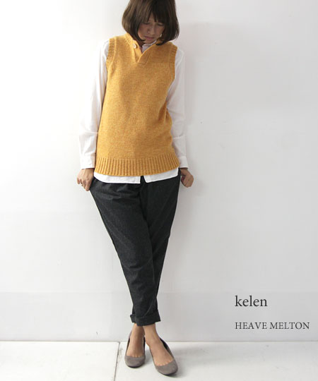 テーパードしたシルエットが特徴のHERVE。上品で季節感のあるメルトン素材で。
