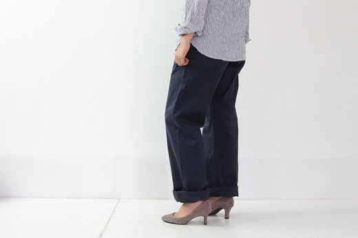 ゆったりとしたシルエットのバランスがとても美しいチノパンツ。