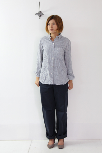 打ち込みのしっかりとしたハリのある素材は少し厚手で秋冬仕様に。