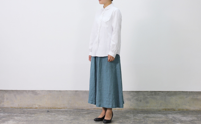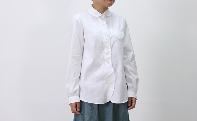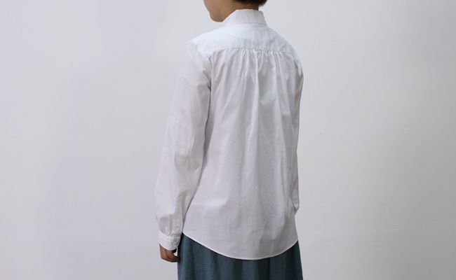 Mannaのベーシックアイテム、丸襟がとても可愛いシャツ。素材はオックス生地でオックスならではのしっかりとした素材感でありながらとてもしなやかで柔らかな着心地と、光沢感のある美しい表情が特徴的。100306_1.jpgオックスショールカラーシャツMannacolor:110 White13,650円(税込)丸襟に袖口や背中のギャザーなど女性らしい雰囲気もありながらミリタリーや