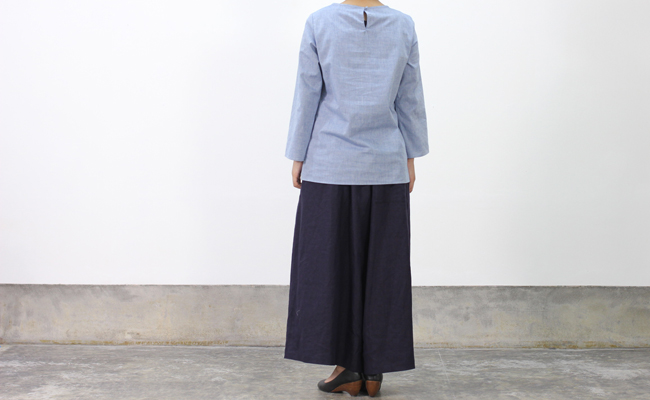 スッキリとしたキレイなAラインシルエットが特徴的で、首後ろのボタンで楽に着脱ができます。