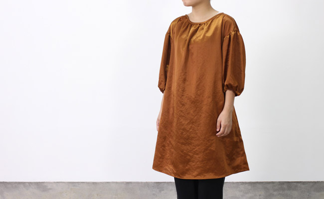 美しい光沢感が特徴のサテン生地を使用した上品な印象のチュニック。