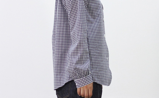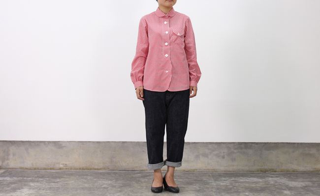 ラウンドカラーが可愛らしい、Manna定番のチェックシャツ。薄手のコットン生地を使用しているので、サラッとした肌触りの軽い着心地。