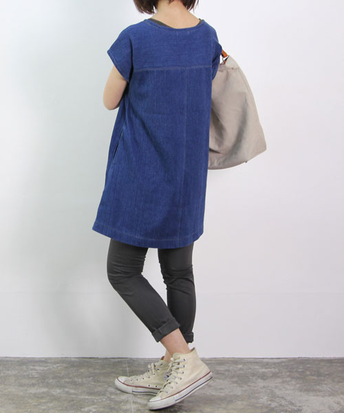 mao made インディゴデニムプルオーバー ストレッチの効いた柔らかなデニム素材を使用したプルオーバーチュニック。 mao made インディゴデニムプルオーバー 緩やかなAラインにヨークとフロントに入った切替が縦のラインをスッキリと強調。胸元にはリベットがポイントになったスラッシュポケットと、両サイドにはシームポケット付き。 透け感もないので夏場は一枚で、アンダーパンツやショートパンツと組み合わせたシンプルでガーリーなコーディネートもお楽しみいただけます。 cotyle-コチレ- 共有:クリックして Twitter で共有 (新しいウィンドウで開きます)Facebook で共有するにはクリックしてください (新しいウィンドウで開きます) 関連