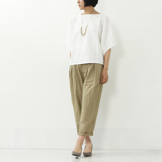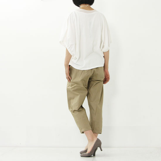 軽くてなめらかなタイプライター生地を使用したmizuiro-indのワイドボックスパンツ。