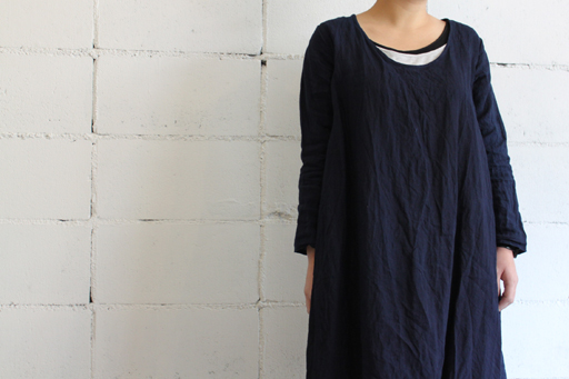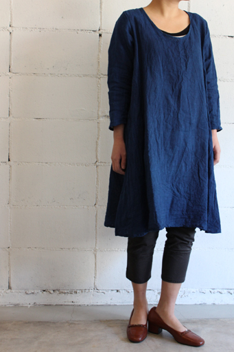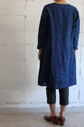 リネンインディゴAラインワンピース mizuiro-ind/ミズイロインド col:77 ネイビー sold out セミロングのカーディガンと合わせれば すごく美しいレイヤードを演出・・・☆