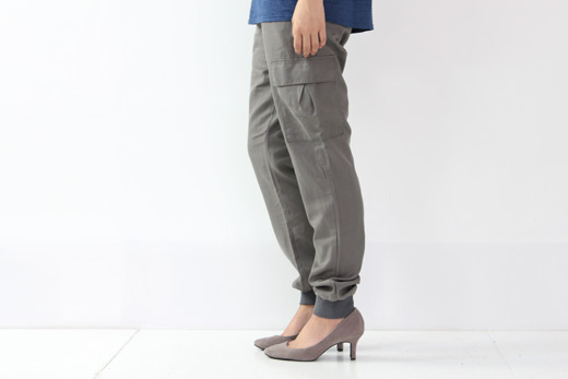 裾部分はリブ仕様で裾でクシュッとさせても、 ブラウジングしてジョッパーズ風に穿いてもいい感じです。