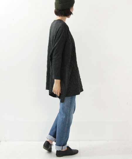 全体的にゆったりとしたシルエットのドルマンスリーブのデザインで、アームにもゆとりを持たせています。
