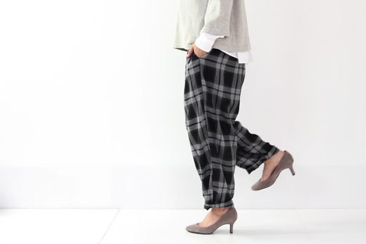 落ちついたカラーのチェック柄でカジュアルになりすぎず大人っぽい雰囲気に。