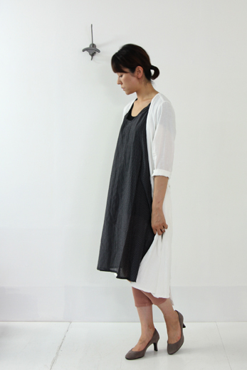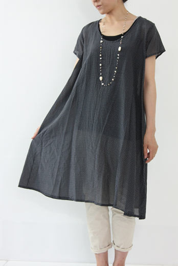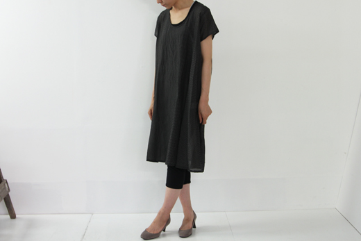 mizuiro-indの定番Aラインワンピース。透け感のある薄手のコットンシルク素材を使用。今からの季節にぴったりの半袖バージョン。