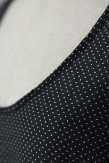 甘くならないピンドット柄で大人っぽく着ていただけます。