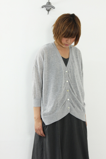 ハイゲージのレーヨンナイロン素材でできた今からの暑い季節に重宝するカーディガン。