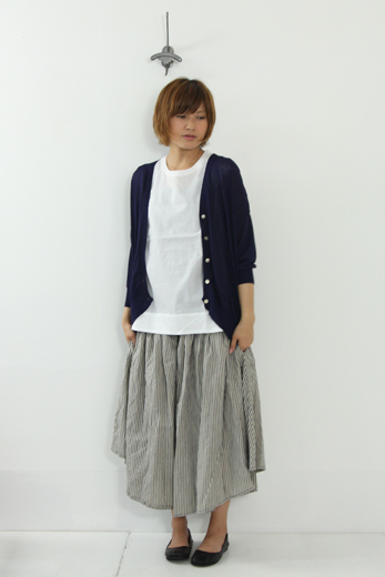 フロントにはギャザー、再度にはスリットが入りmizuiro-indらしい独特のシルエットが表現されています。