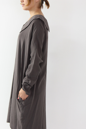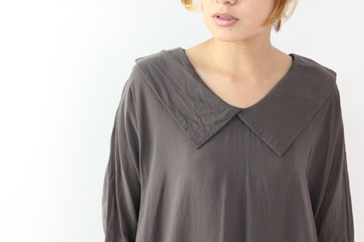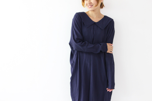 mizuiro-ind / ミズイロインド ワイドカラードルマンワンピース 大きな襟のついたmizuiro-indらいしデザイン性のある一枚。 ネック周りはほどよく開いているので可愛くなりすぎず、落ち着いた大人っぽい雰囲気に。