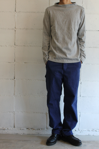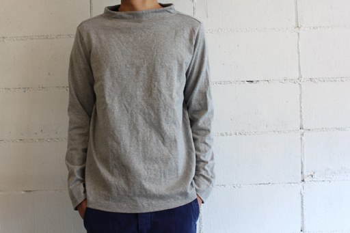 こにちわ。 デッキマンよりも さらにシンプルに。 首元が少し立ったようなデザインが可愛い こちらも定番ガンジーネックカットソー。 着心地の良い柔らかなコットン生地は長いシーズン活躍しそう。 シンプルですがバランス良く 一枚でサラッと着ても存在感のある形です。