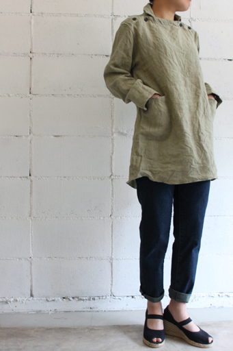 デニムなどとの相性はもちろん 細身でもワイドでも色々なボトムスと合わせて楽しめます。 そしてこちらはリネン素材の無地カラー。 こちらもこれからの季節にピッタリ。