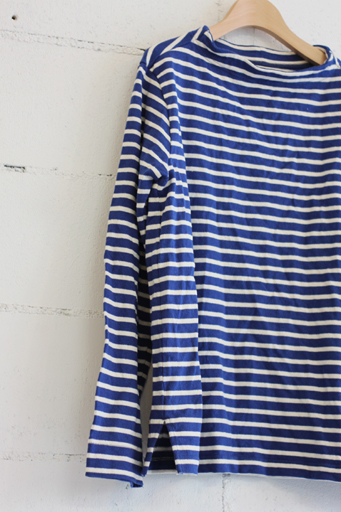 ボーダーガンジーネックカットソー col:ブルー×生成