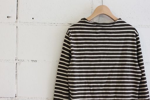 ボーダーガンジーネックカットソー col:生成×ネイビー