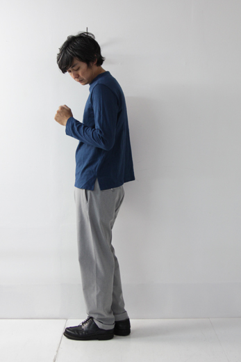 nisica / ニシカ ガンジーネックカットソー 首元が少し立ったようなデザインが特徴です。
