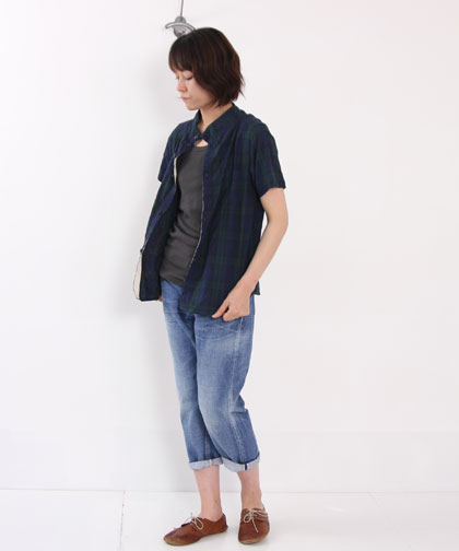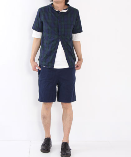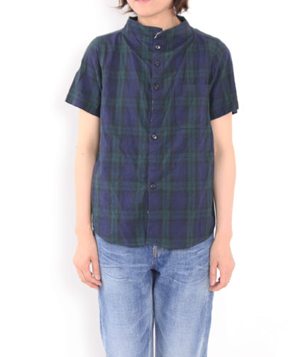 cotyle別注、ブラックウォッチ柄のガンジーネックシャツ。半袖もご用意しました。