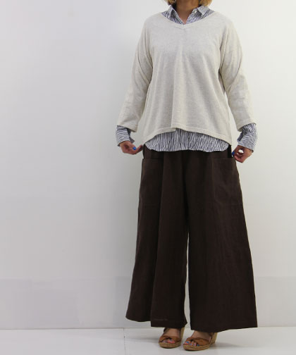 両サイドの大きなポケットがポイントにAラインのシルエットがとてもきれいに広がります。