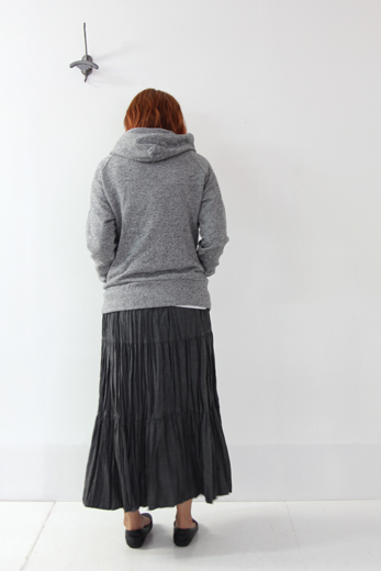 Rock mount / ロックマウント ウール3段ティアードロングプリーツスカート細かく入ったプリーツが広がりを抑え、スッキリとしたシルエットが特徴的。
