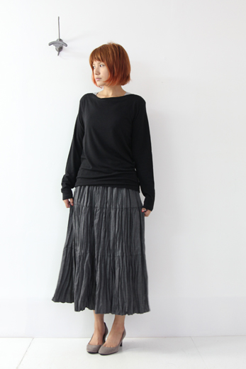 暖かみのある薄手のウール素材を使った3段切り替えの定番ティアードロングスカート。