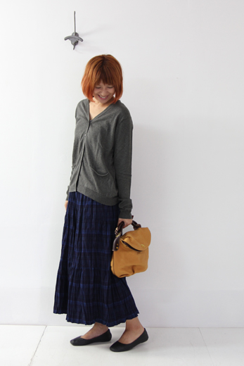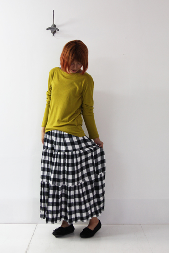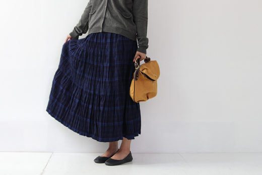 暖かみのあるコットンネル生地を使った3段切り替えの定番ティアードロングスカート。