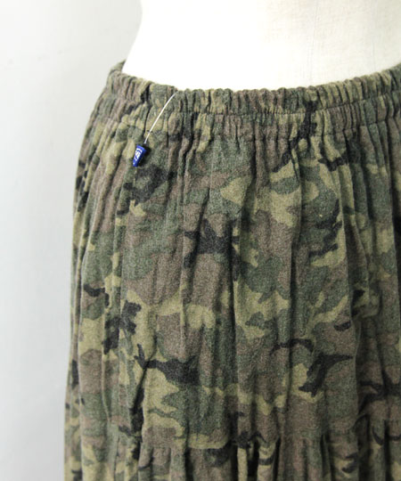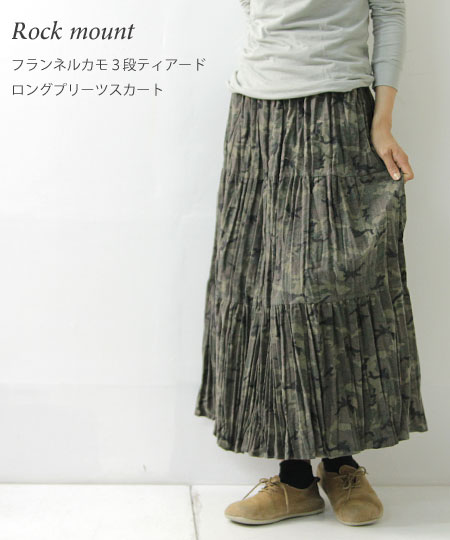 Rock mount / ロックマウント フランネルカモ3段ティアードロングプリーツスカート