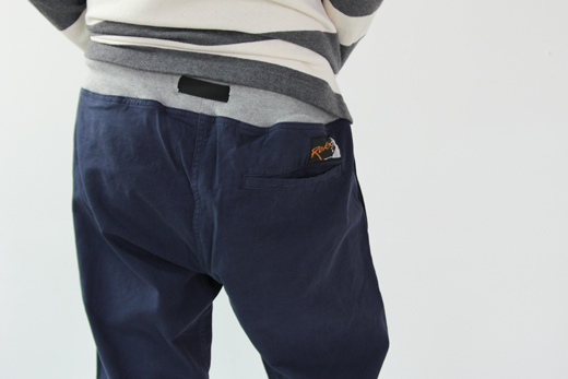 久しぶりにcotyleに帰ってきました。ROKXです。そのROKXから定番のロングクライミングパンツの裾とウエストにリブを施して アクセントをつけたこちら。