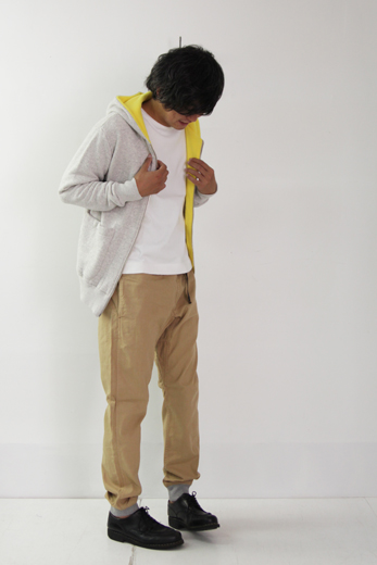 少し浅めの股上やスッキリとしたシルエット、リブ使いの配色がカジュアルで