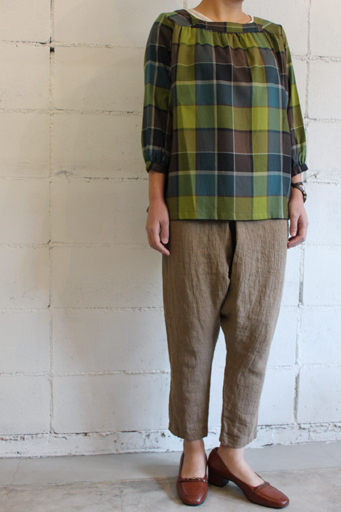 レーヨンチェックスクエアネックプルオーバー rolca on the notes/ロルカオンザノーツ col:GREEN 14,070円(税込) rolcaの定番 すっきりとしたスクエアネックが特徴のプルオーバー。