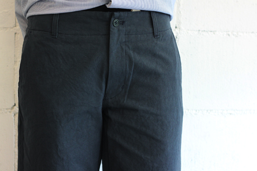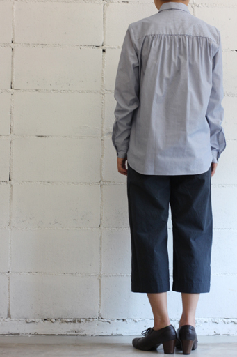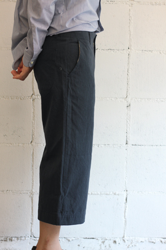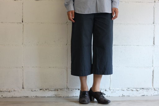 コットンポプリン7分丈パンツ style+confort/スティルエコンフォール col:チャコール 15,540円(税込) やや薄手、パリッとハリのあるコットンポプリンに洗いをかけた生地
