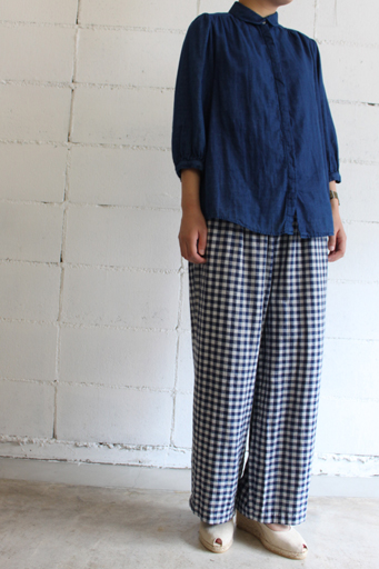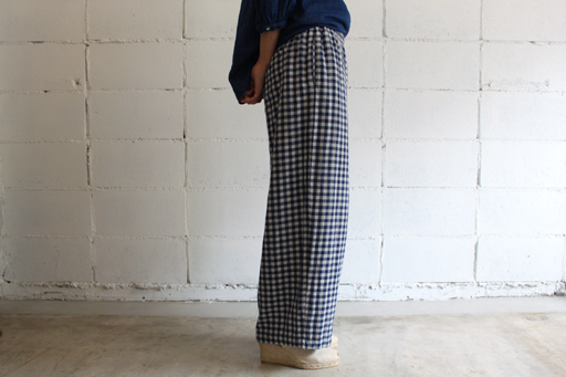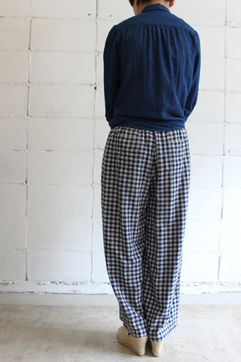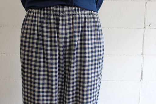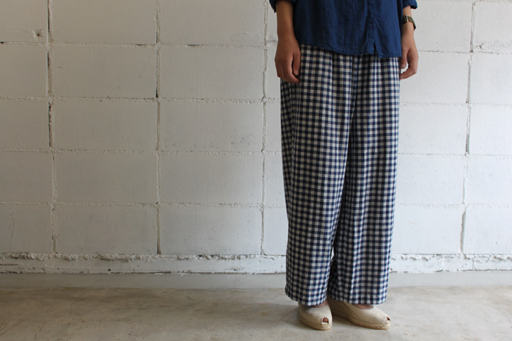 ダブルガーゼイージーパンツstyle+confort/スティールエコンフォールcol:ネイビーギンガム14,490円(税込)ふんわりと肌触りのよい コットンダブルガーゼ素材を使用したワイドイージーパンツ。
