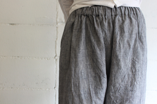 リネンワイドサルエルパンツ style+confort/スティールエコンフォール col:ネイビーグレンチェック 15,540円(税込) サラっとしたシャリ感のあるリネン素材。