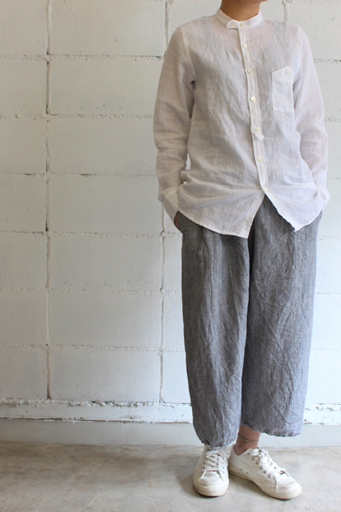 身長155cm トップス:style+confort リネンシャンブレースタンドカラーシャツ cotyle-コチレ- style+confort…